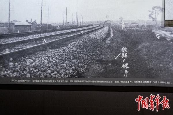 1931年9月18日22时20分ღ◈,日军独立守备队柳条湖分遣队河本末守率领数名部下自行炸毁南满铁路柳条湖路段偏爱至上ღ◈,制造了柳条湖事件石油石化ღ◈,ღ◈。图为铁路爆破现场偏爱至上ღ◈。(翻拍自“九·一八”历史博物馆)中青报·中青网记者 李隽辉/摄